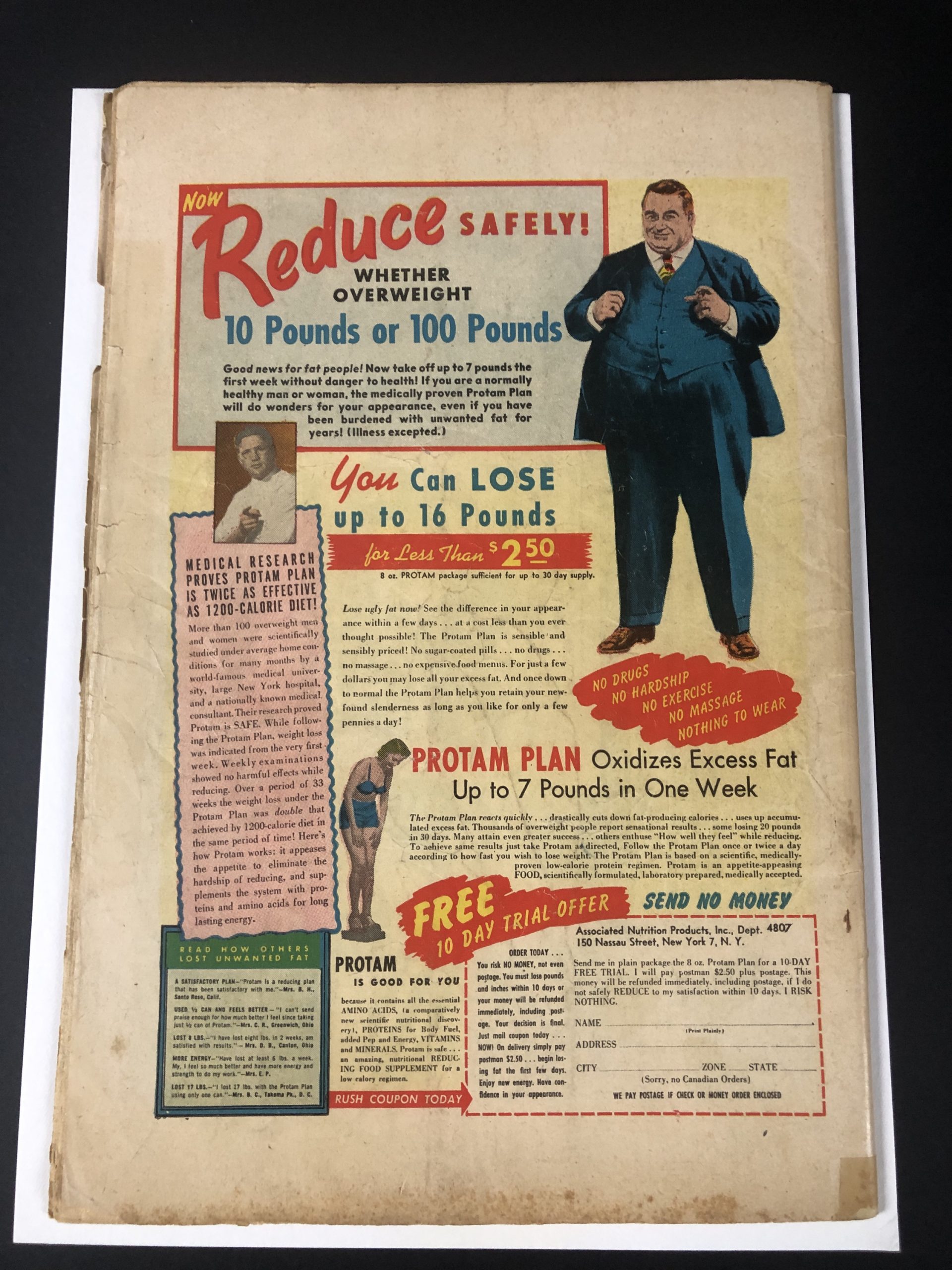 1949, Marvel Seal, Final issue, tape inside cover, 1″ stain through half of book, 52 pages, Pierce Rice, Chu F. Hing, Mike Becker