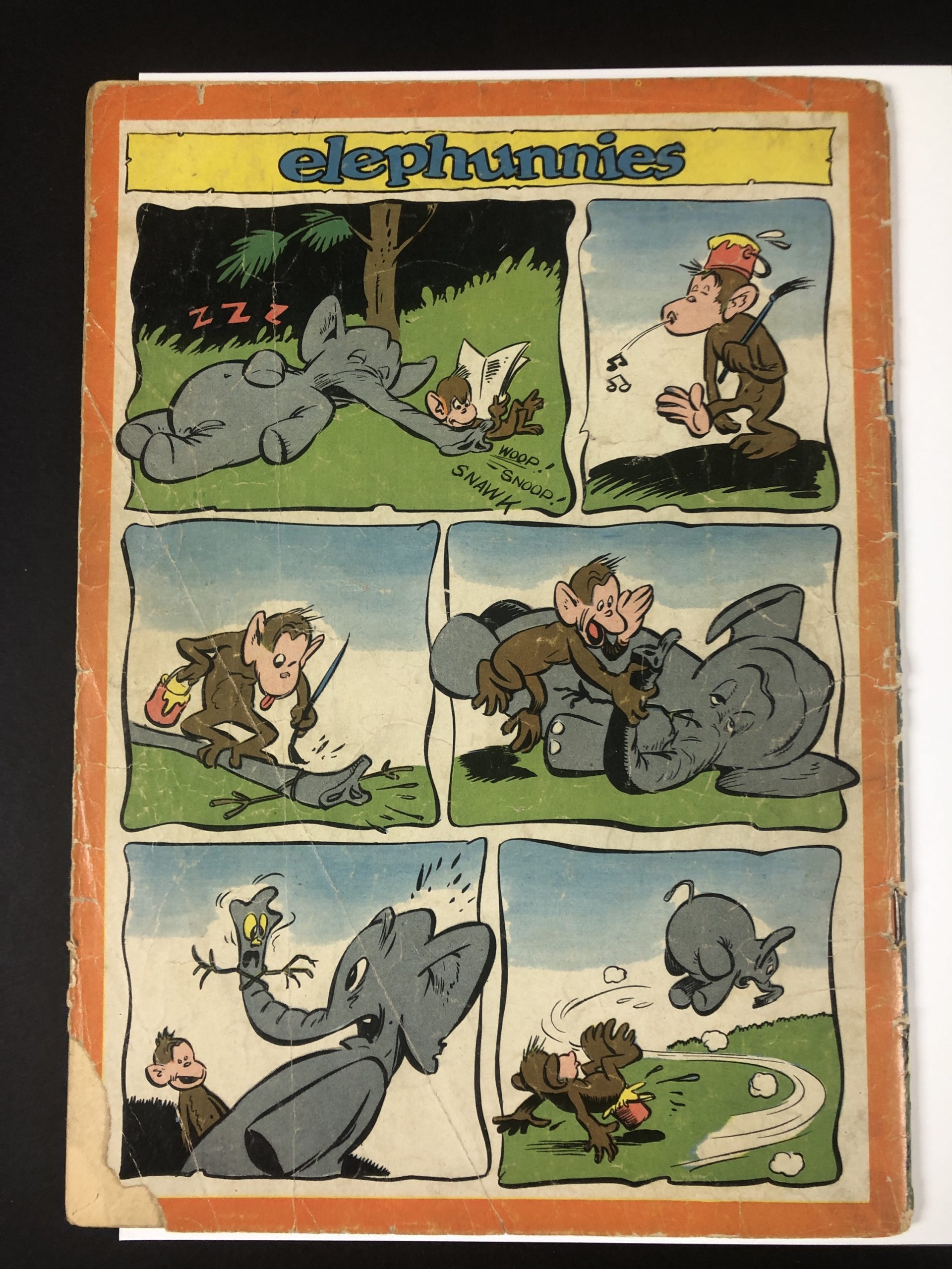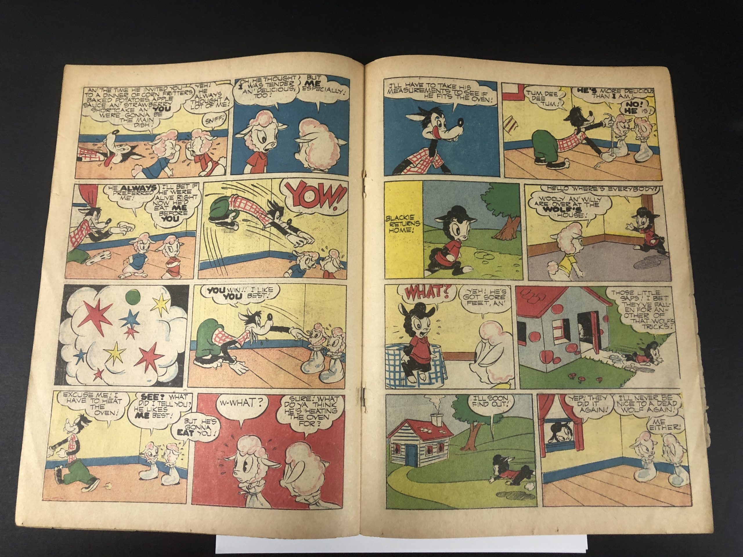 1945, tape inside cover, initials in pencil on 1st page, 1/4″ margin tear 3 interior pages, 1″ corner 1945, missing last 2 pages, 52 pages, Walt Kelly