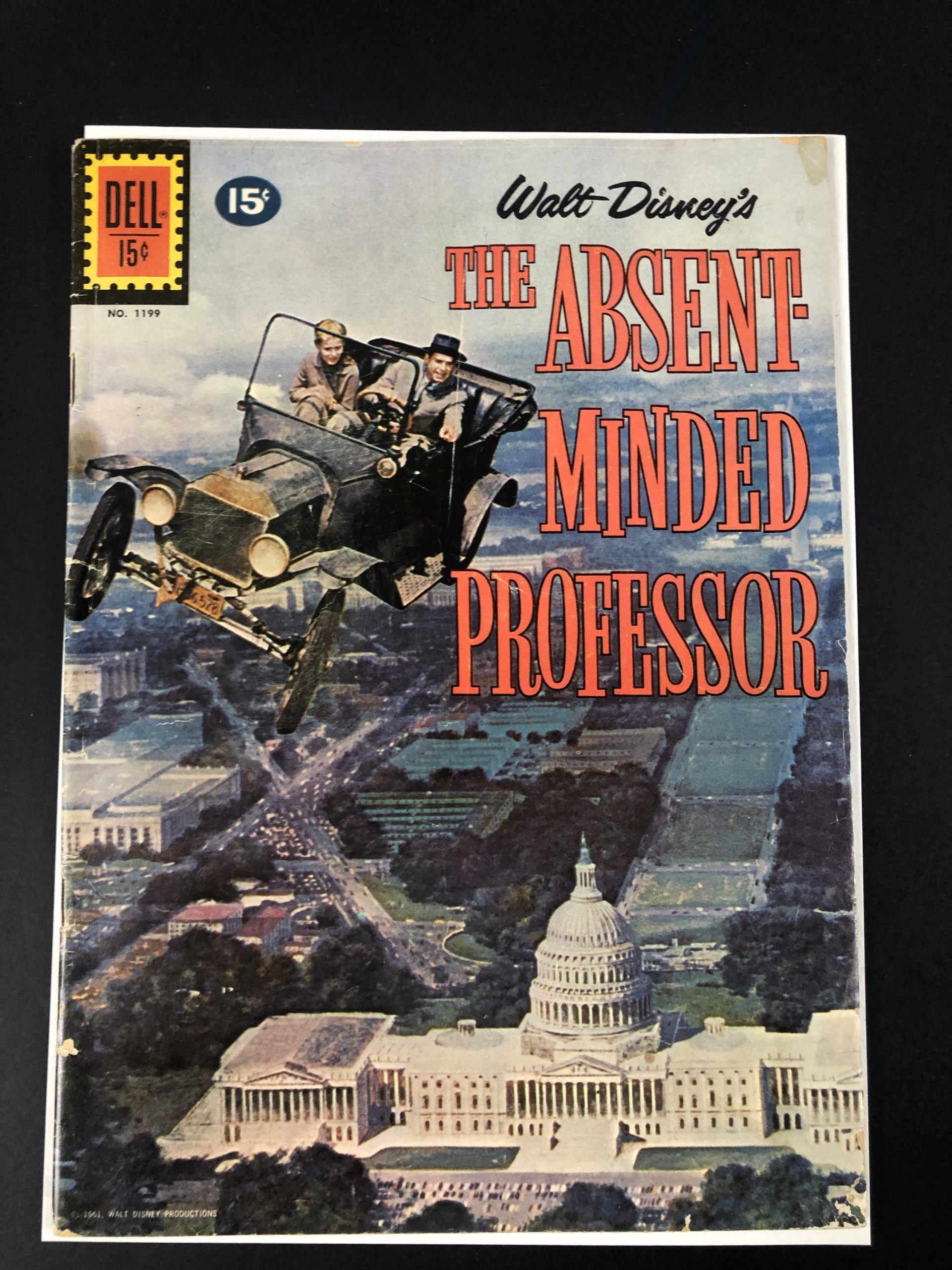 1961, Photos inside front cover The Absent-Minded Professor (Disney), 1″ tear at centerfold, back stain through half of book, 36 pages, John Ushler