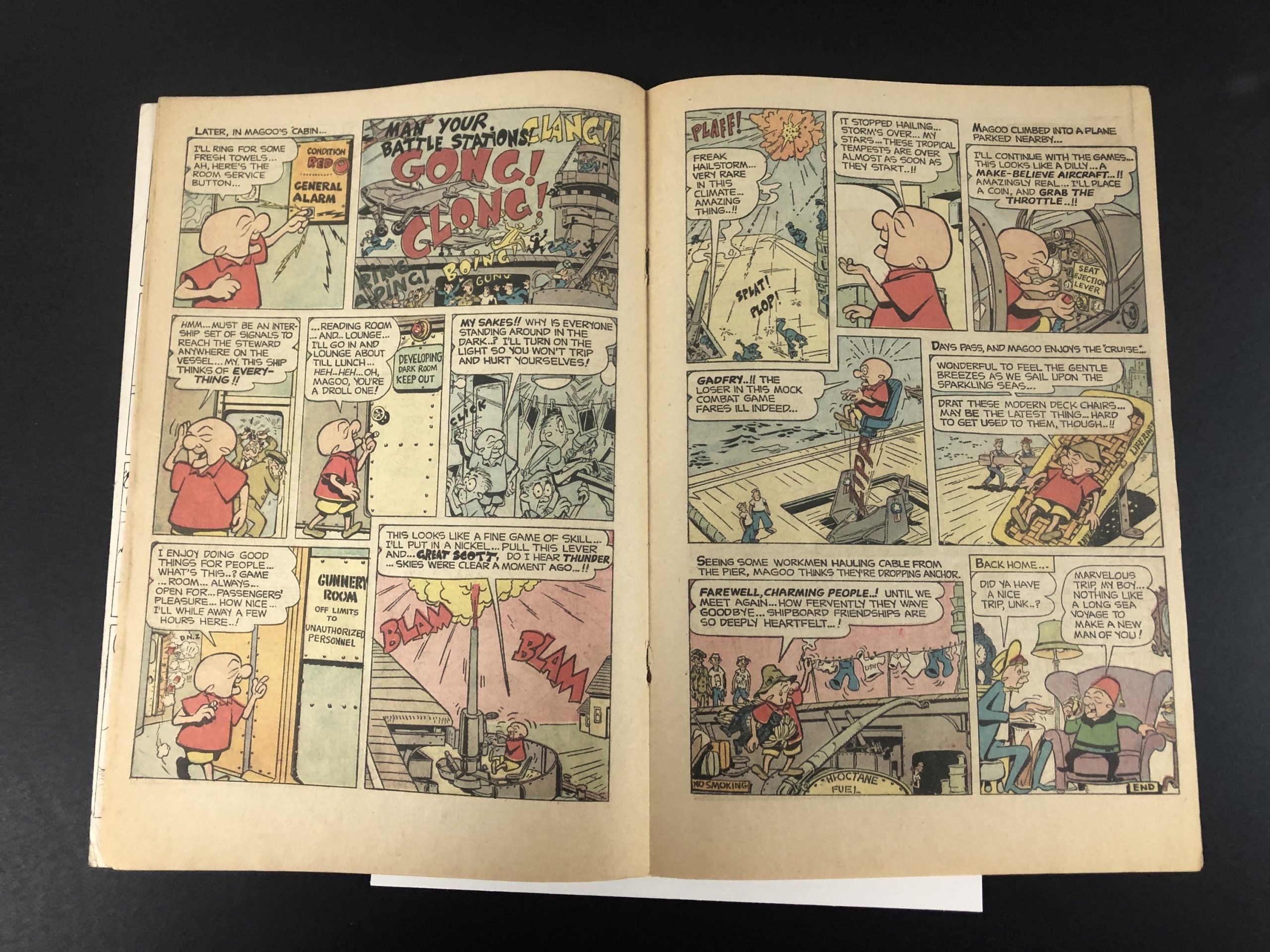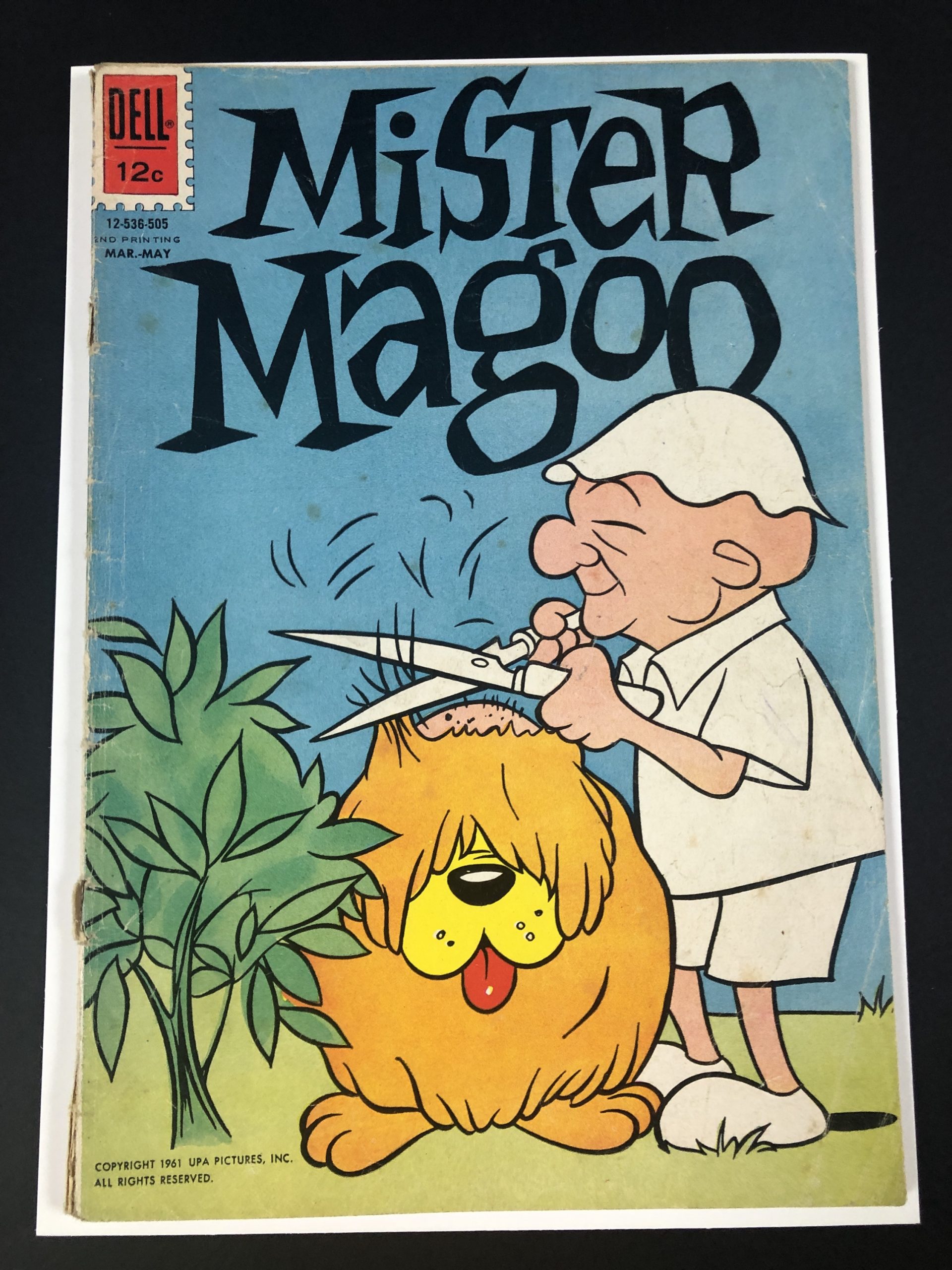 1961, Mister Magoo; cover detached, 1″ spine split cover and 3 wraps, centerfold detached at bottom staple, 36 pages,