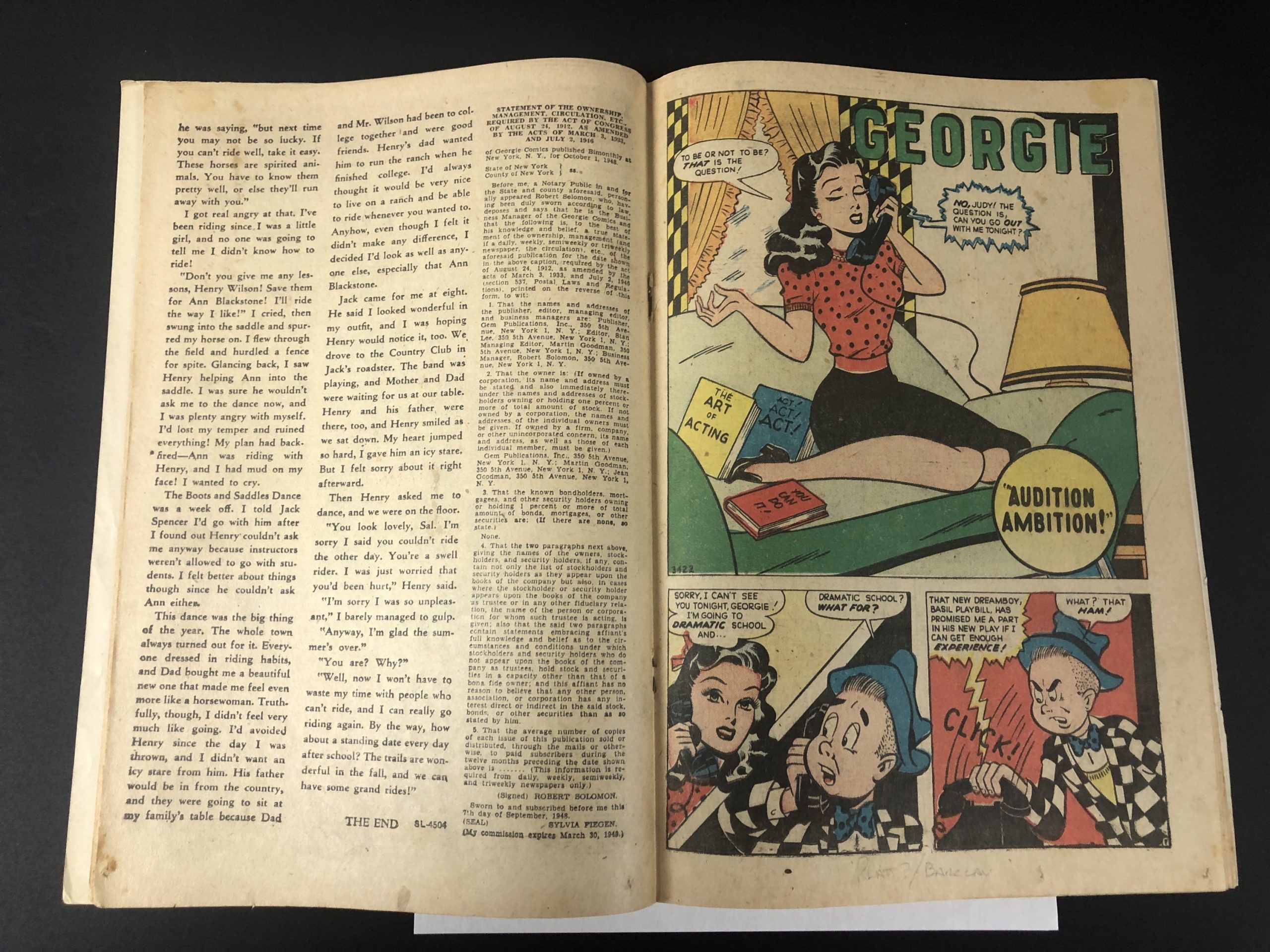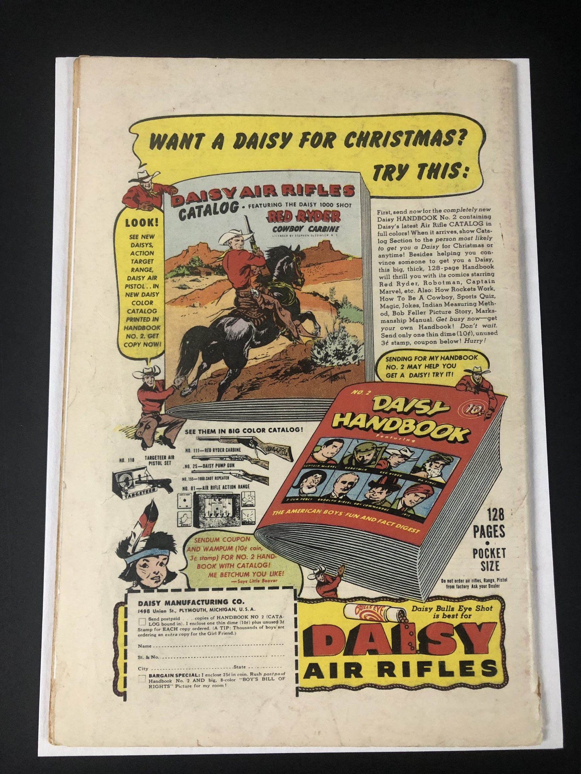 1949, Marvel Seal, 1″ spine split cover/4 wraps, pencil name of artist in pencil by Jim Vadeboncoeur Jr. on each splash page, 52 pages , Frederic Weraham editorial
