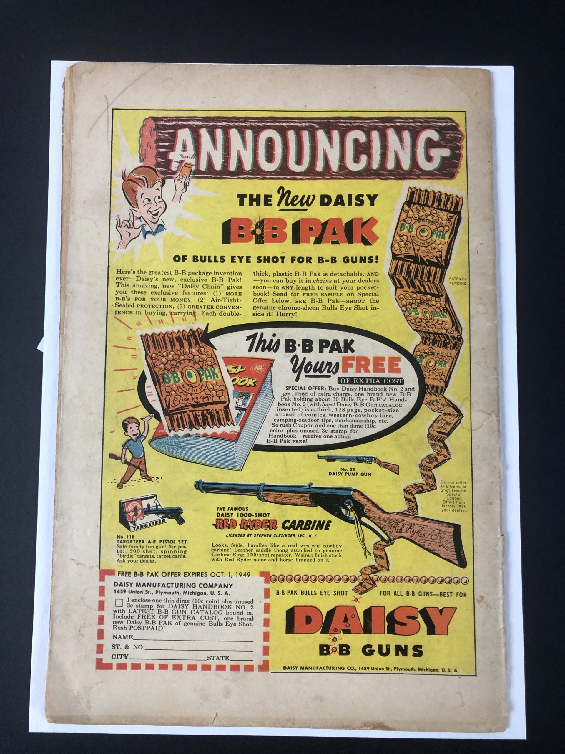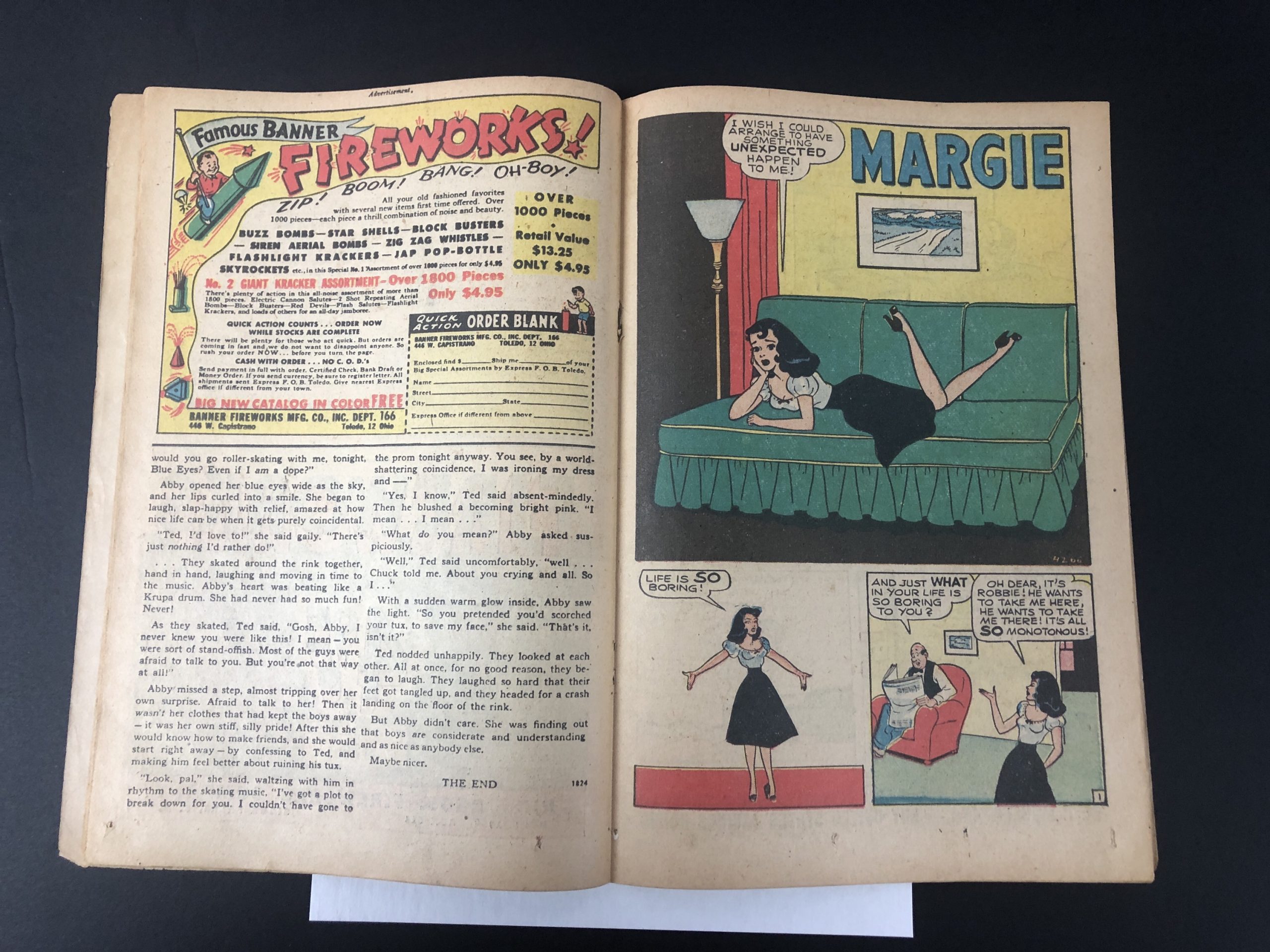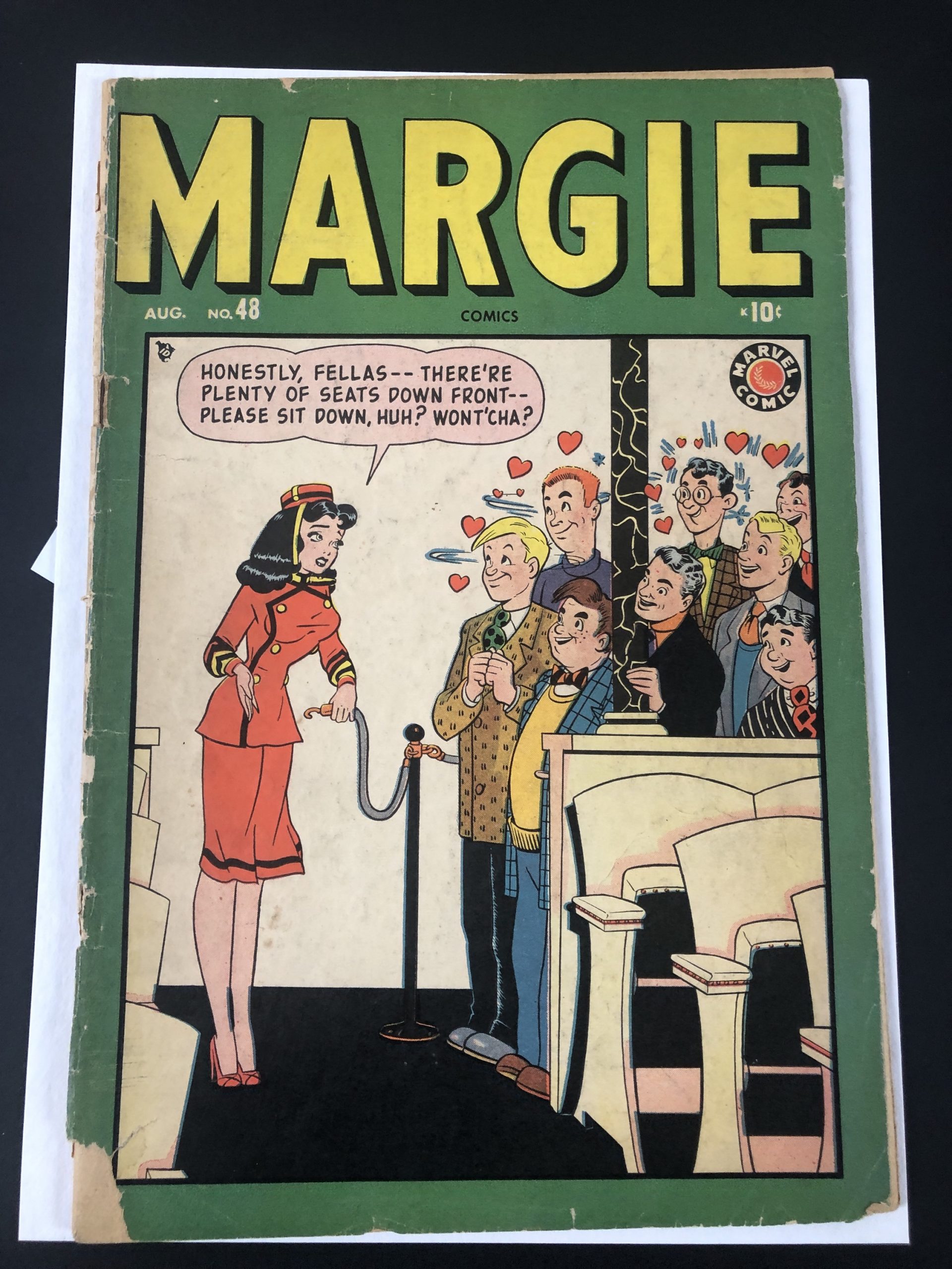 1949, Marvel Seal, 3″ spine split, cover barely hanging on at top staple, 52 pages