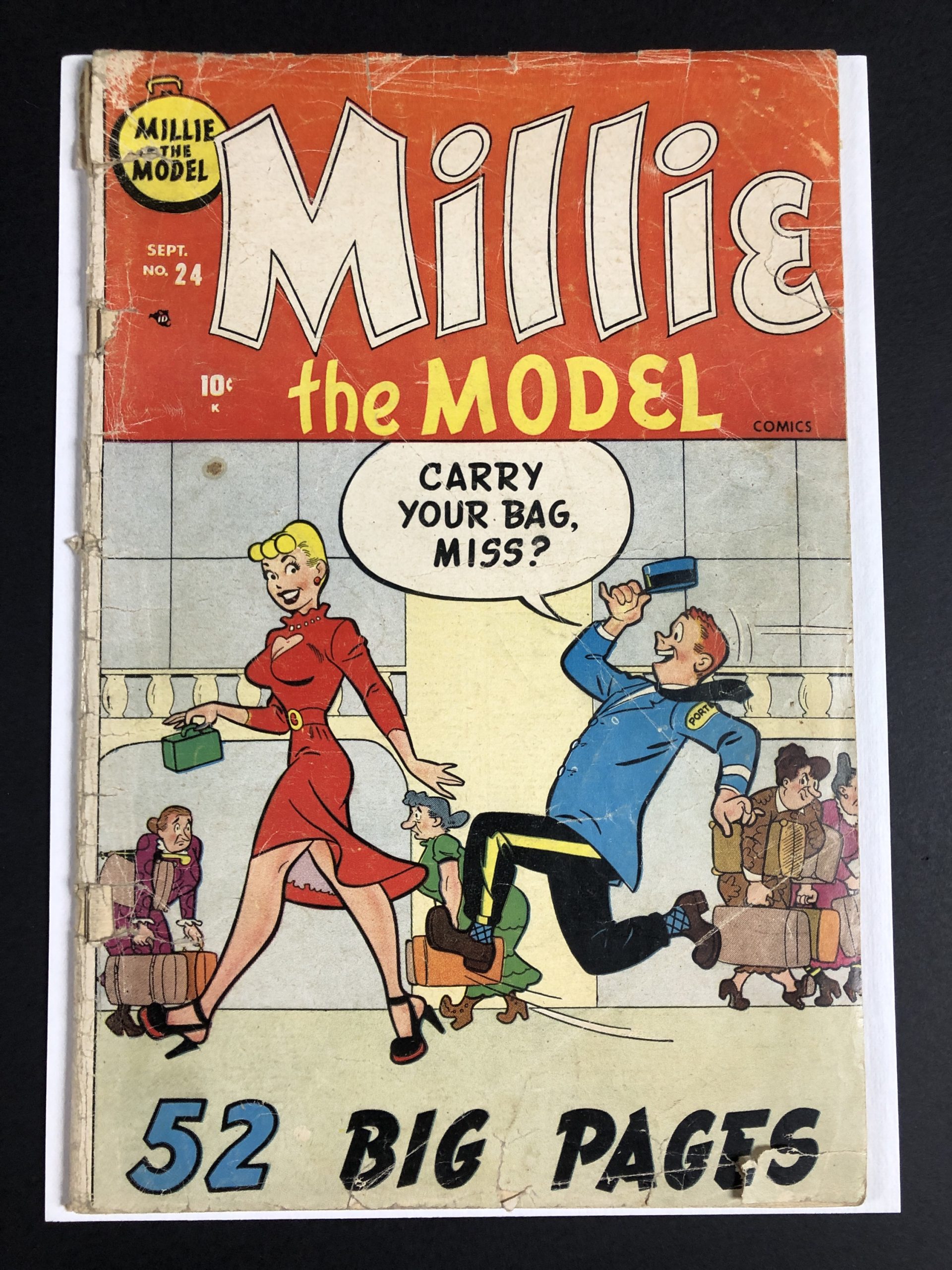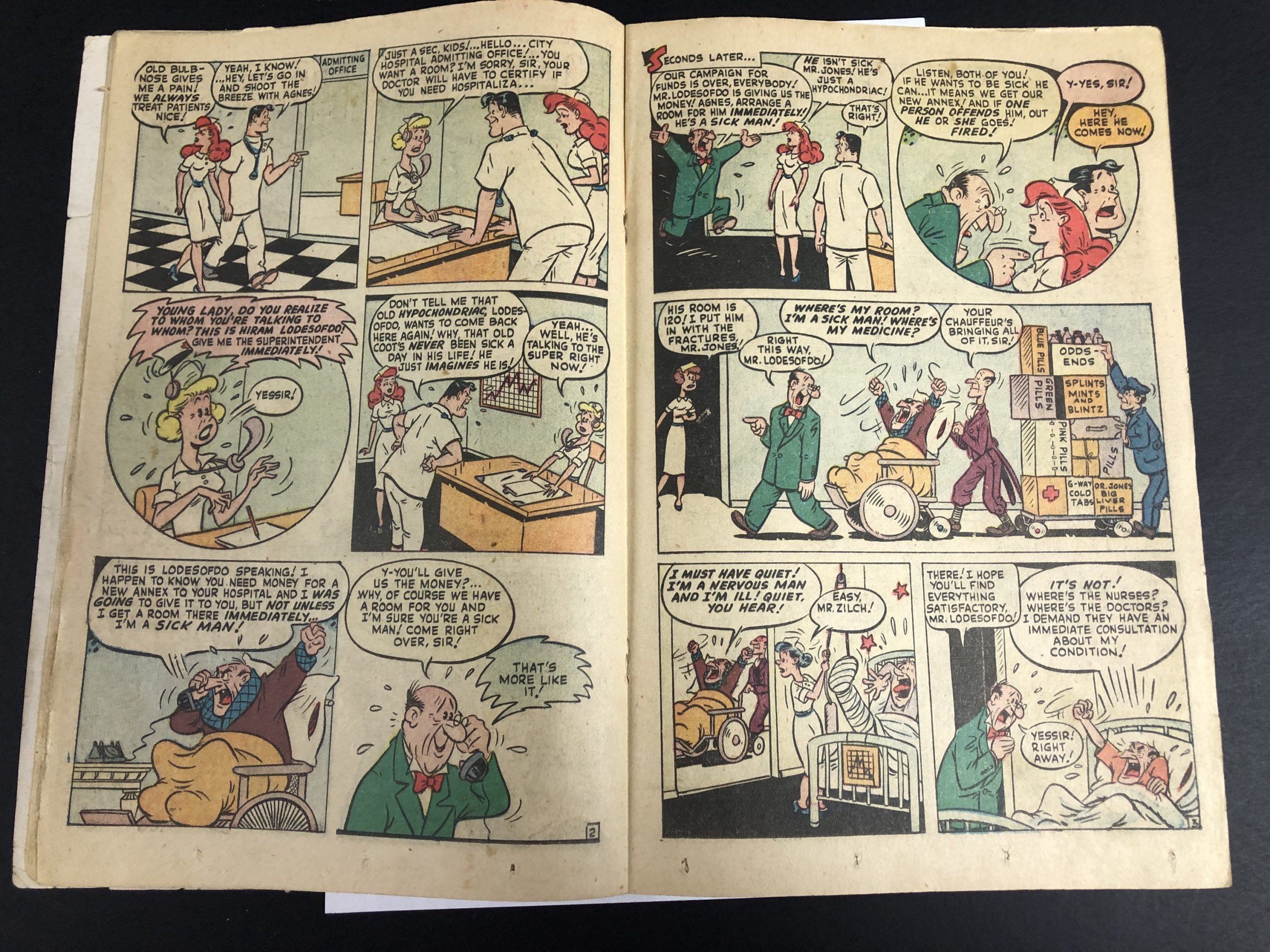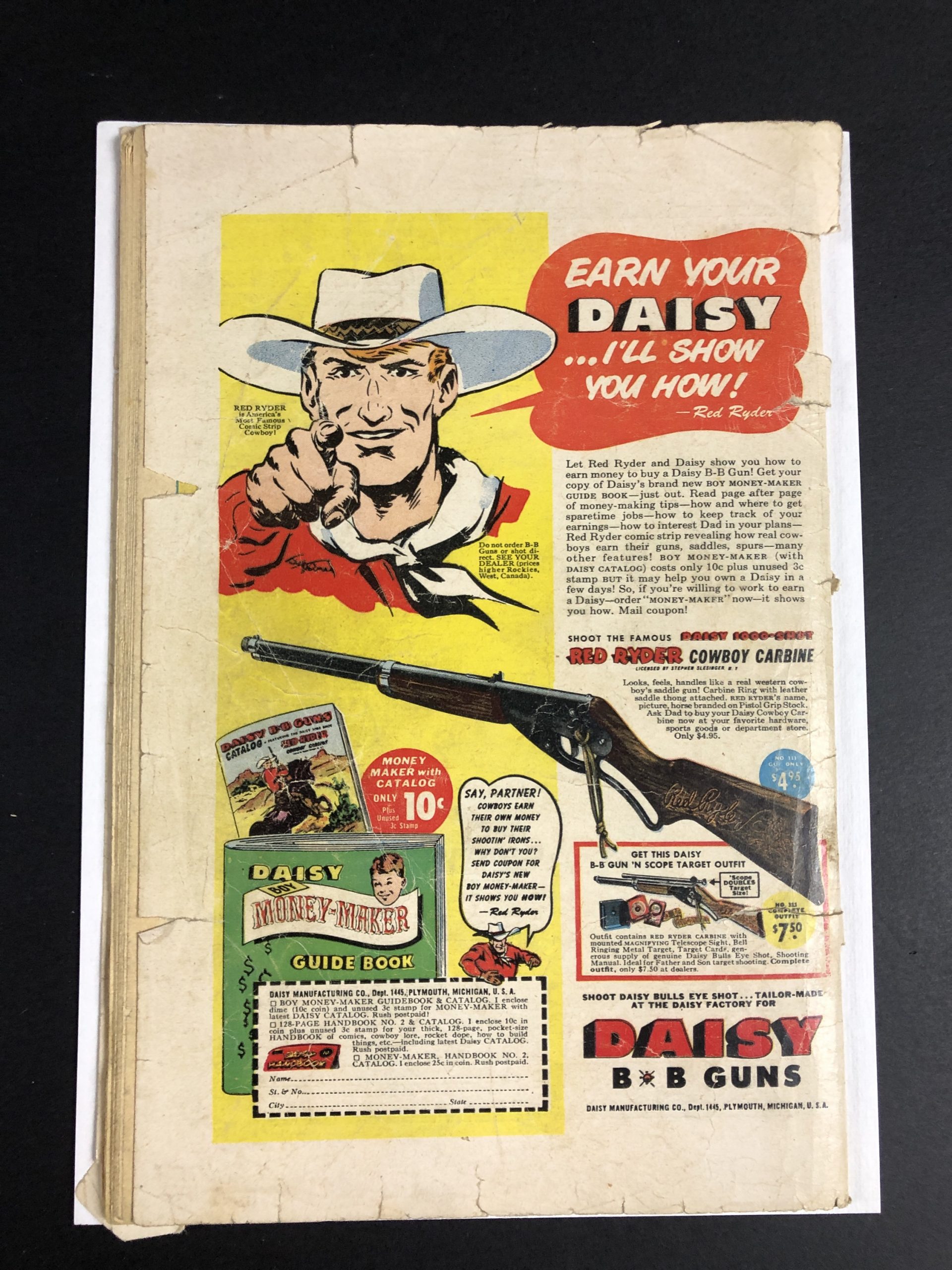 1950, 1″ spine split, cover detached, centerfold detached at bottom staple, 52 pages, Dan DeCarlo
