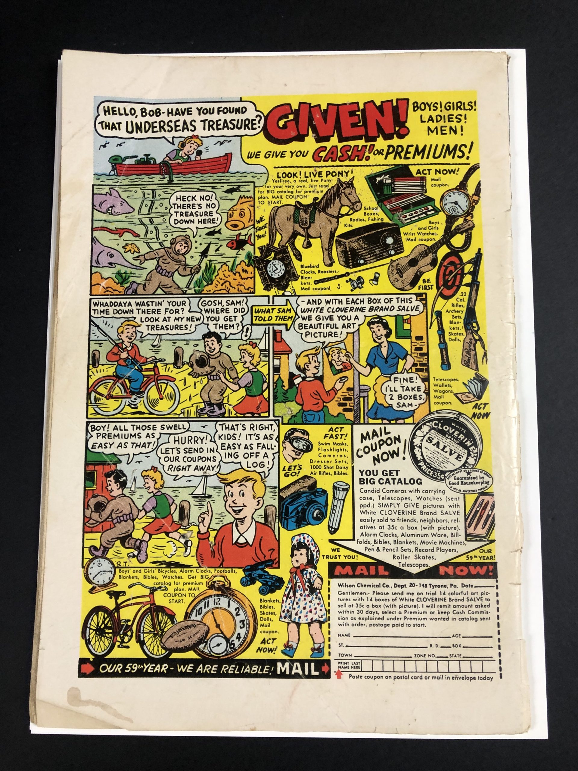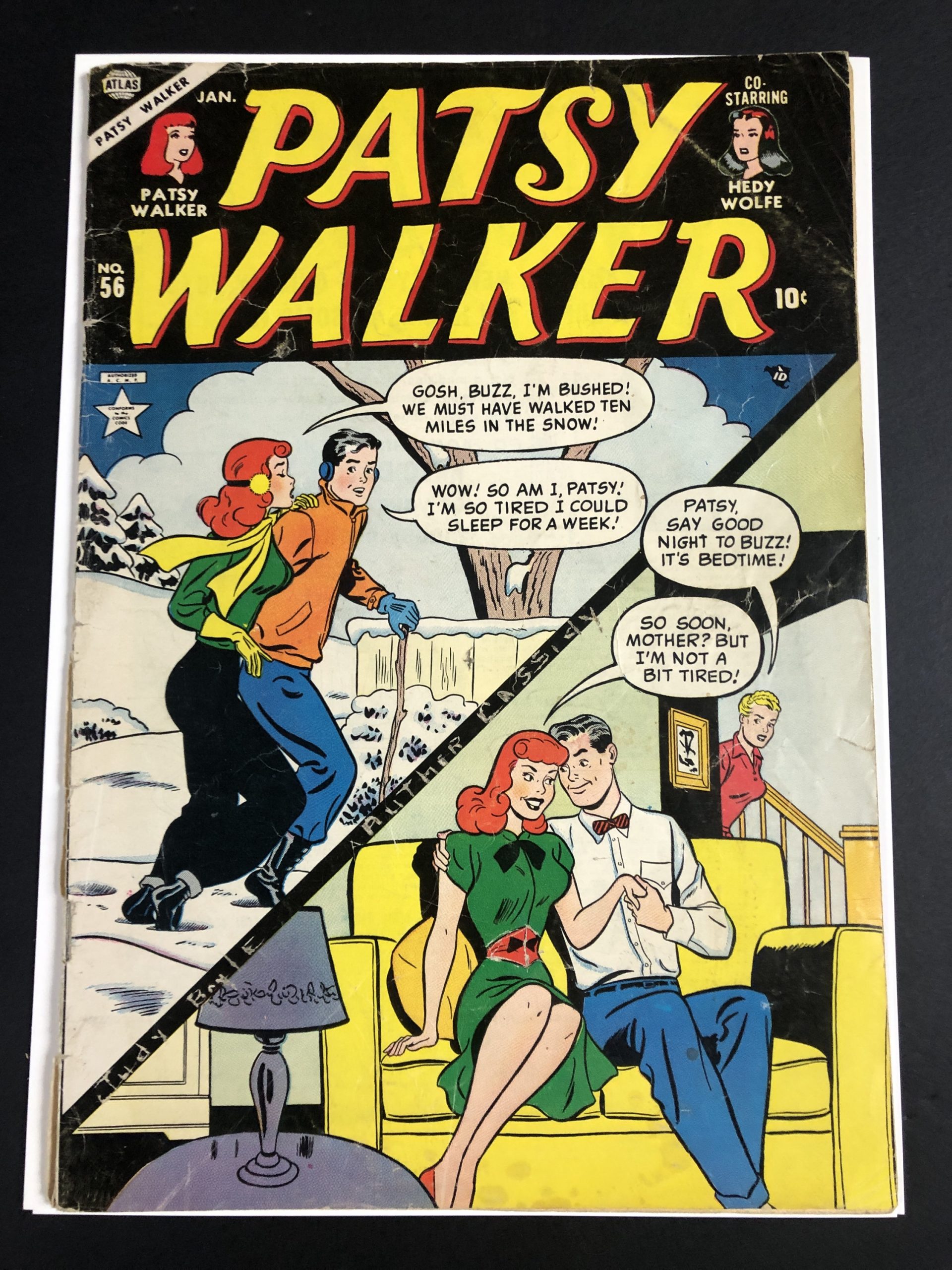 1955, 1″ spine split, cover loose at bottom staple, small stain on outer edge of interior pages, 36 pages, Al Jaffee