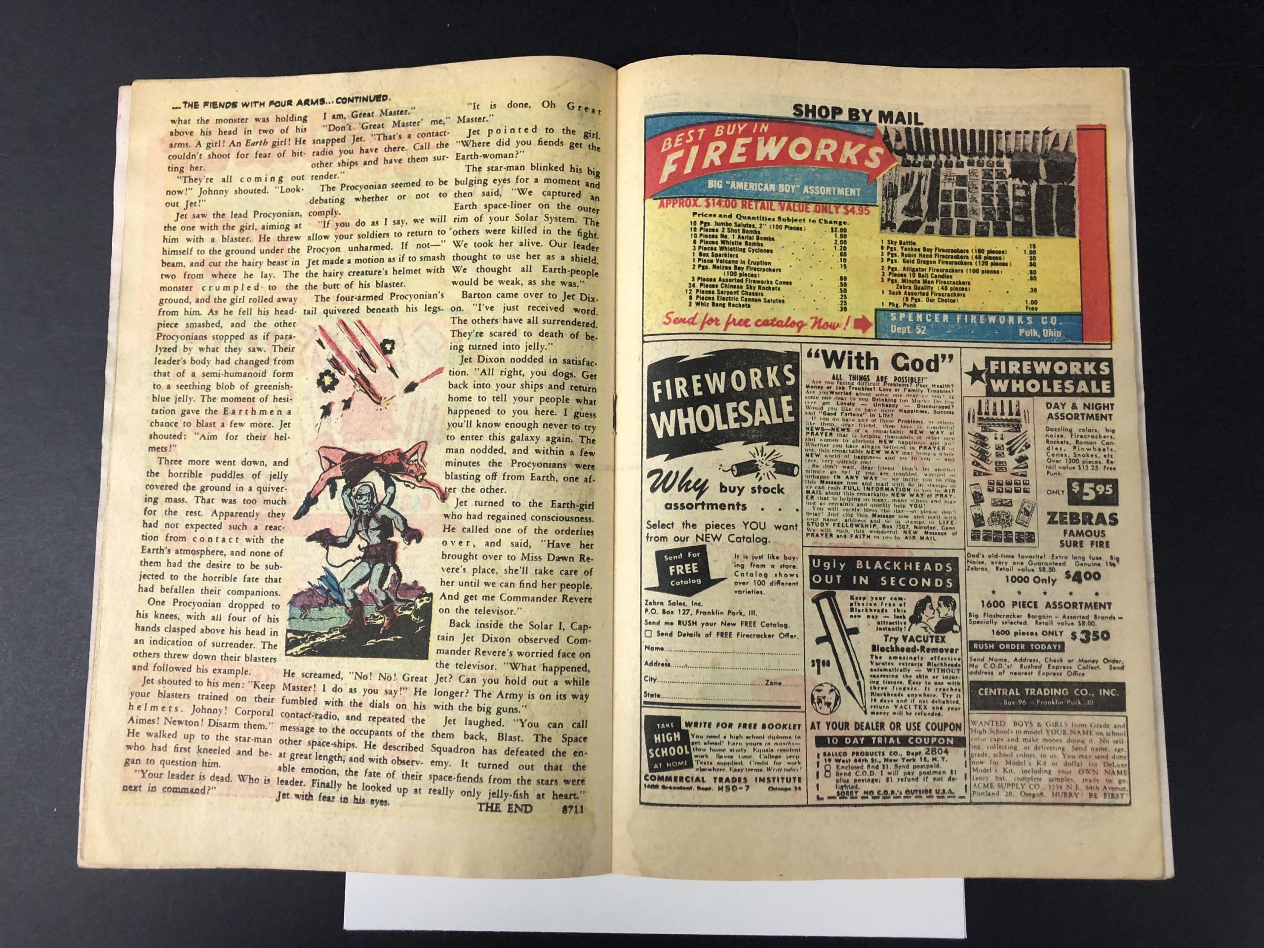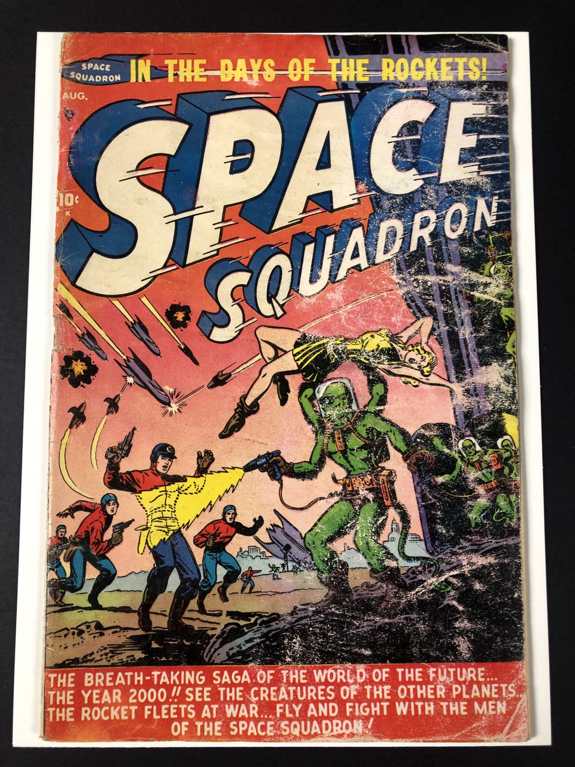 1951, 1/2″ spine split, moisture damage, cover loose at single staple, 36 pages, Werner Roth, Joe Maneely