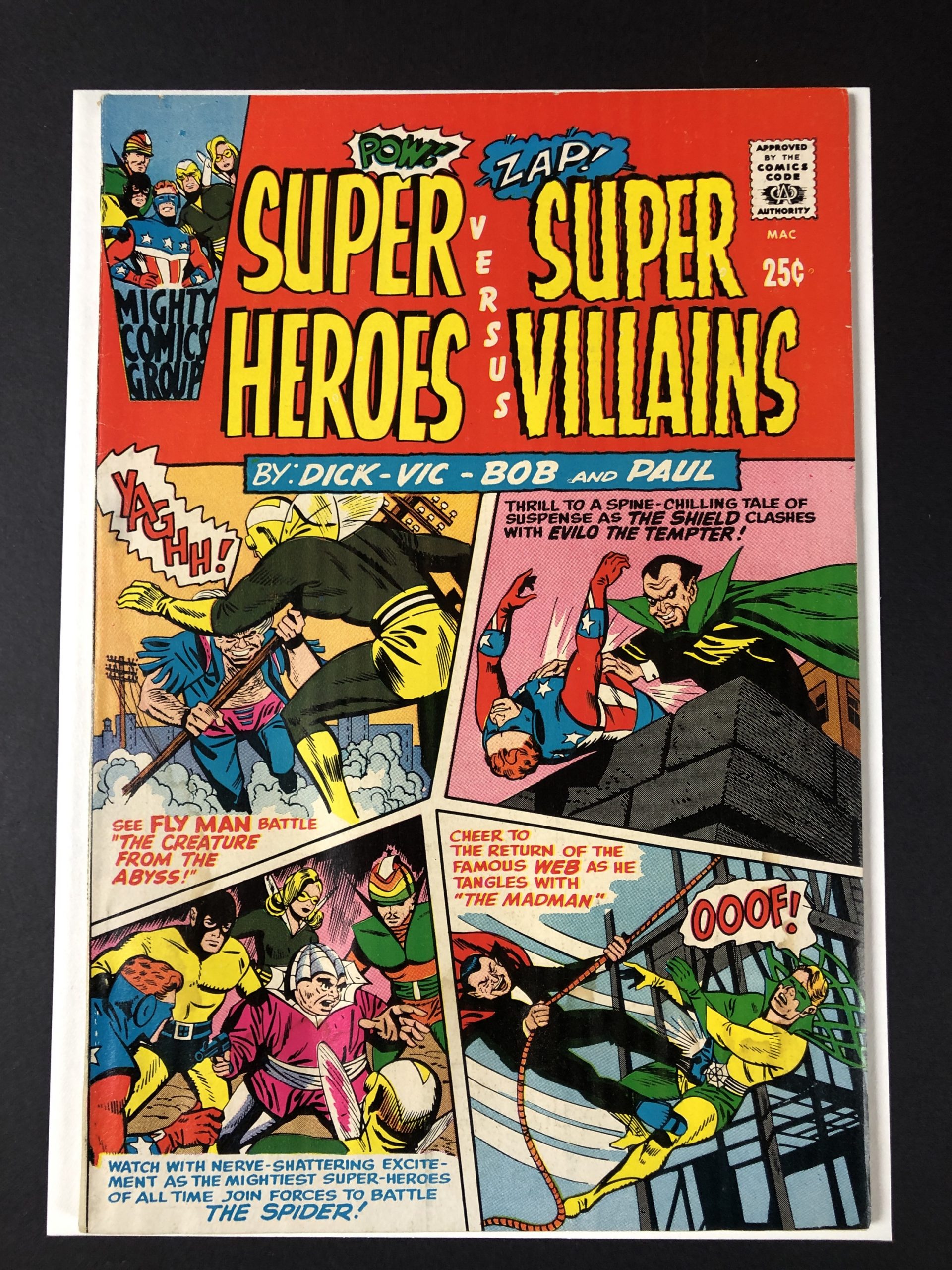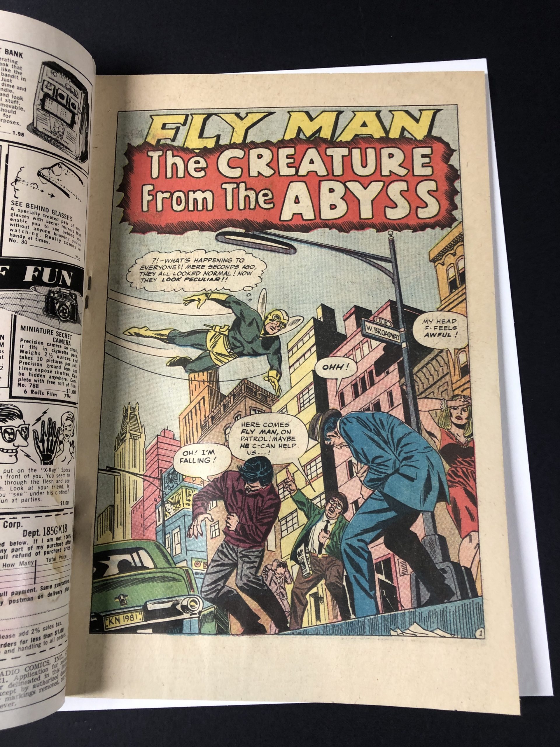 1966, rusty bottom staple, moisture damage bottom through book, 68 pages, Reprints from Fly Man #31, 34 and 38, Paul Reinman, Mike Sekowsky