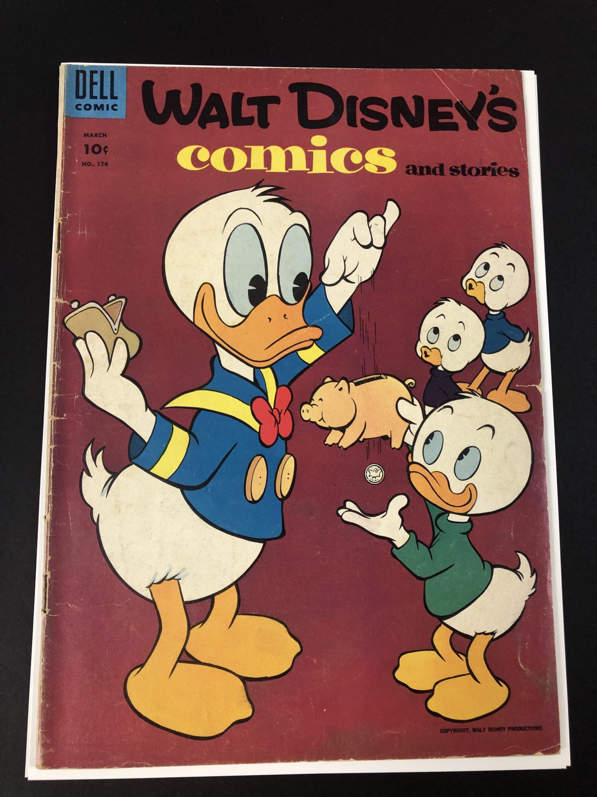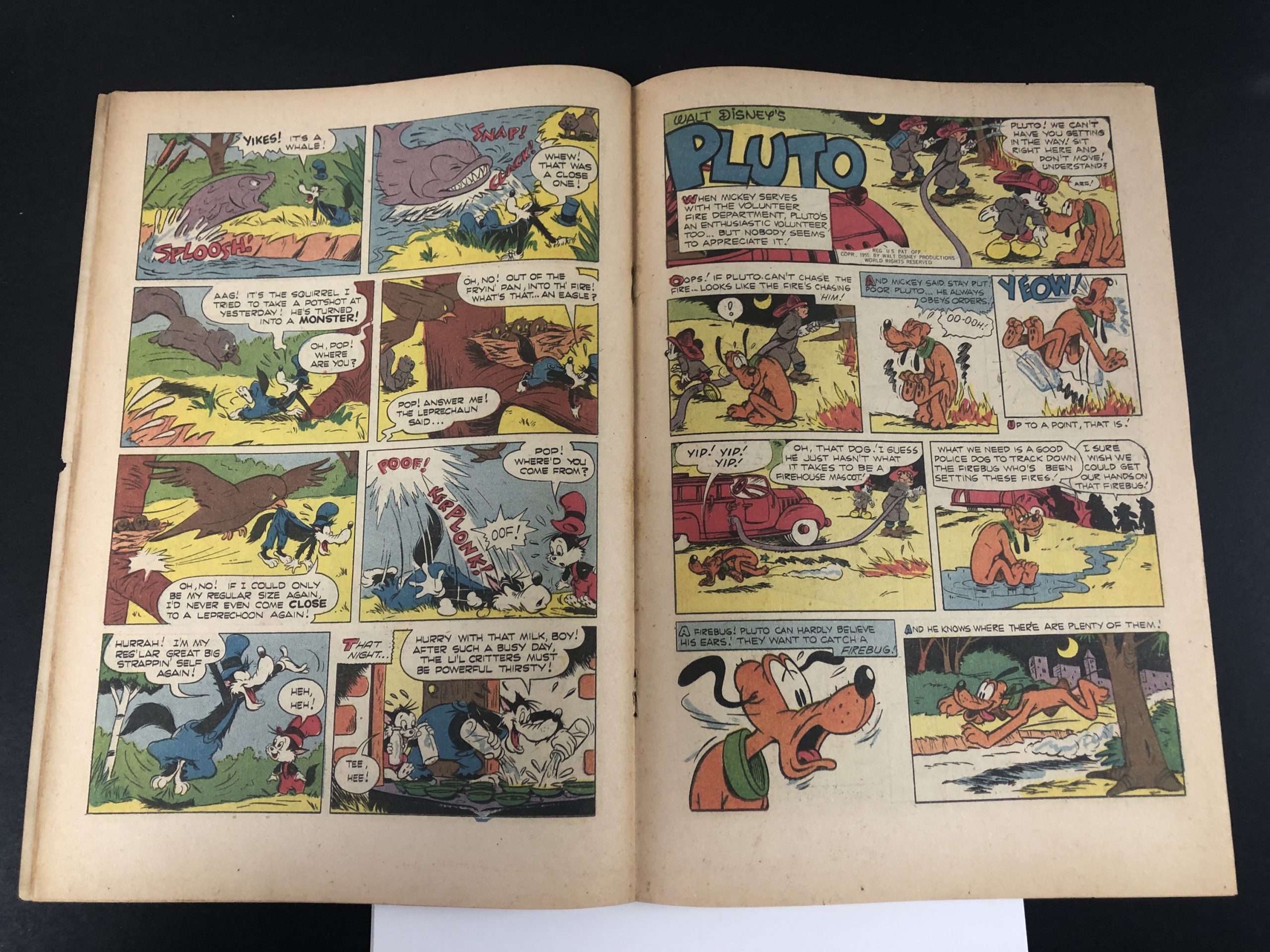 1955, Carl Barks, Vol. 15 #6, centerfold detached at bottom staple, 1/4″ tear first 5 pages, 36 pages, Donald Duck, the Li’l Bad Wolf, Pluto, Mickey Mouse