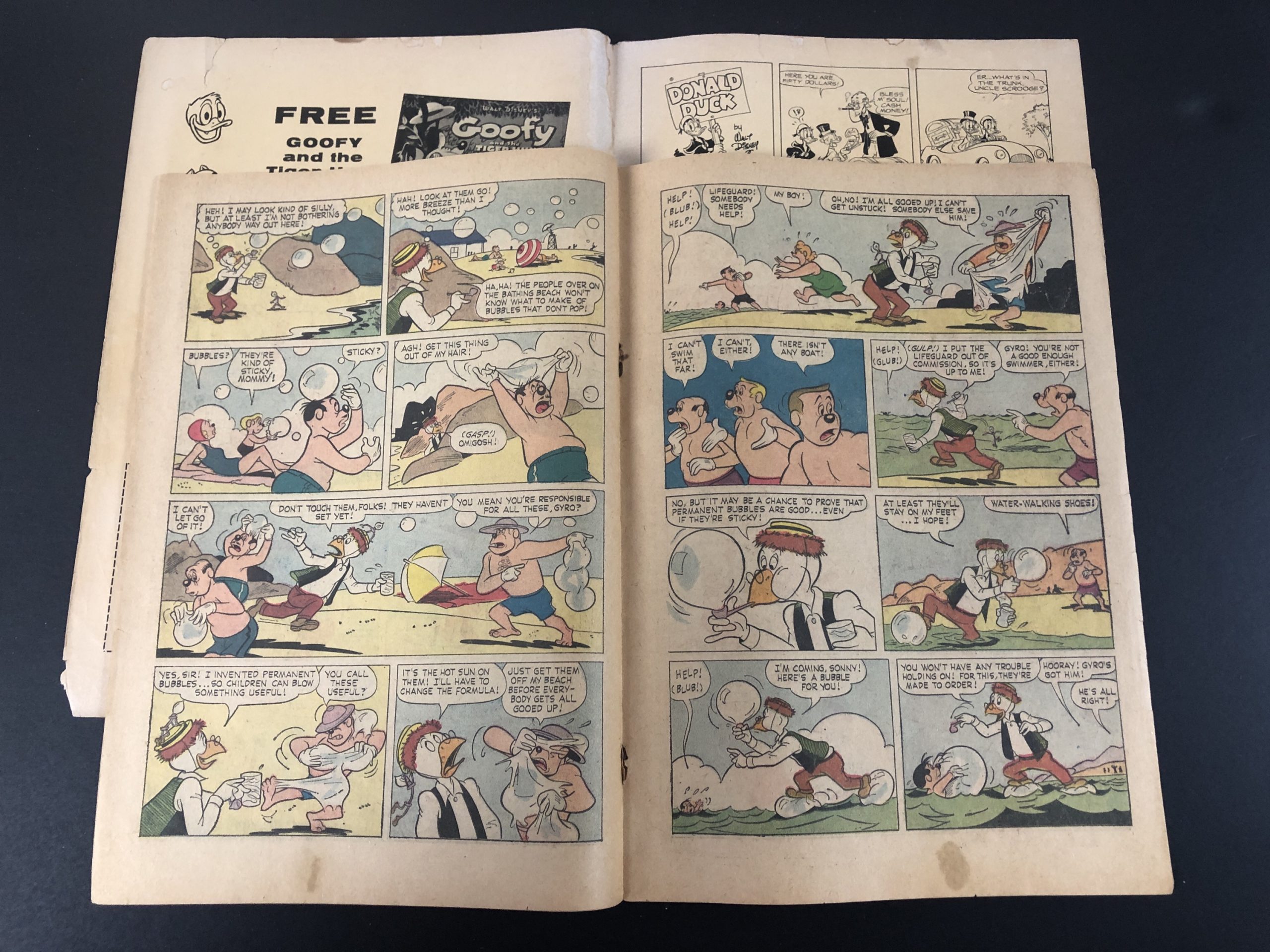 1962, Last Dell issue, Carl Barks Vol. 22 #11, 3″ spine split, cover detached, centerfold detached, 1/5″ stain 3 interior pages, 36 pages