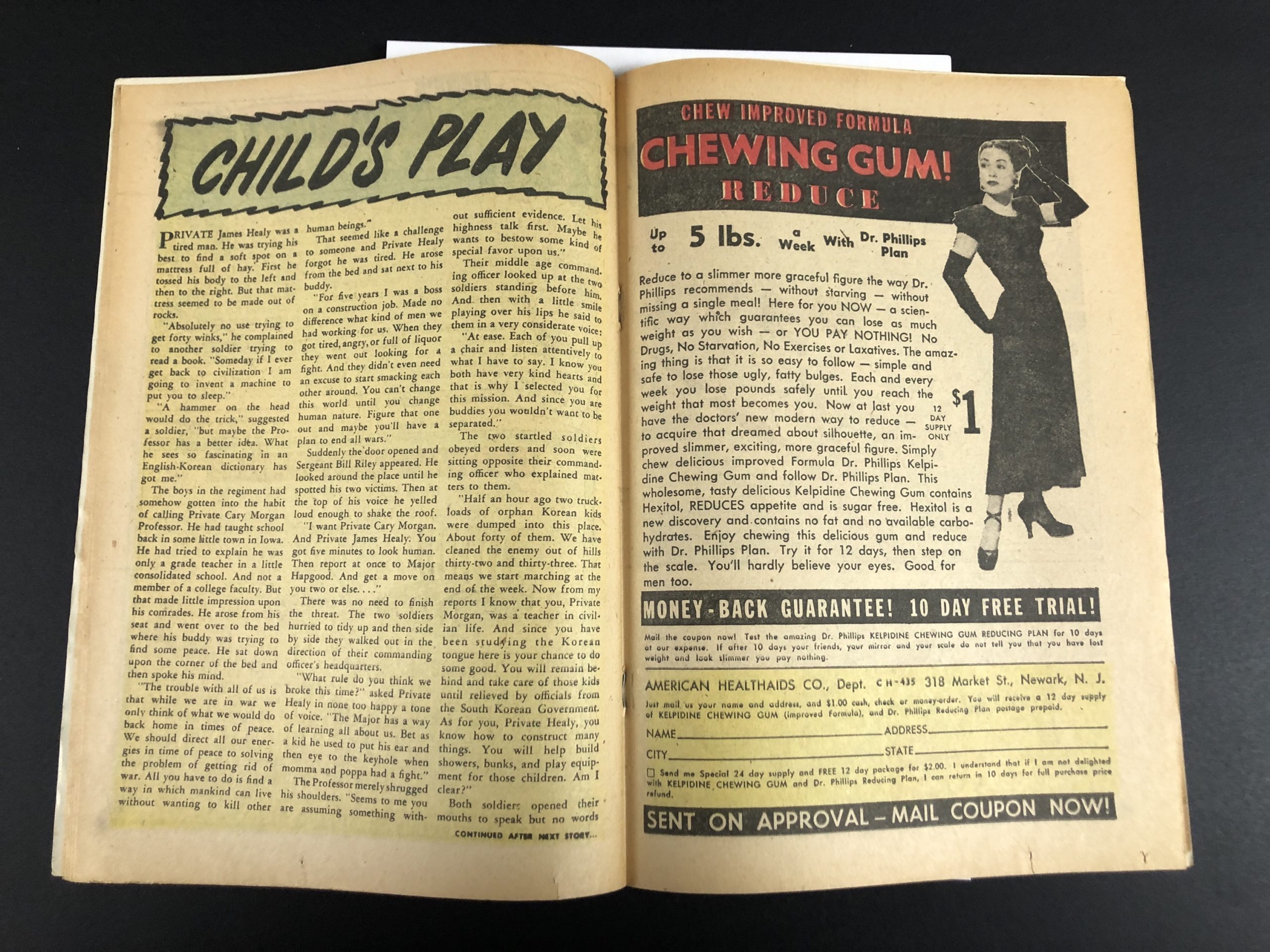 1954, 1″ tear interior page, 36 pages, Joe Maneely, Bill Walton, John Severin, Louis Ravielli, Gil Evans